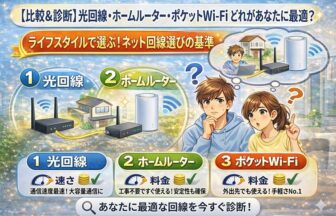 光回線・ホームルーター・ポケットWiFi・ルーター/メッシュを、料金・速度・使い方でわかりやすく比較。さらに「遅い・切れる・つながらない」「設定・IPv6」などのトラブルも手順付きで解決します。