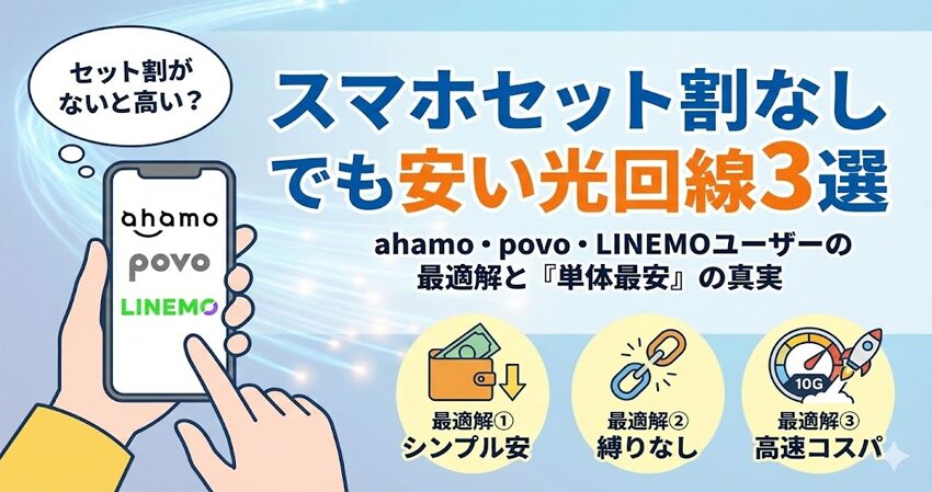 結論から言うと、スマホセット割が効かない(or 消える)人ほど、光回線は“選び方”を変えるべきです。