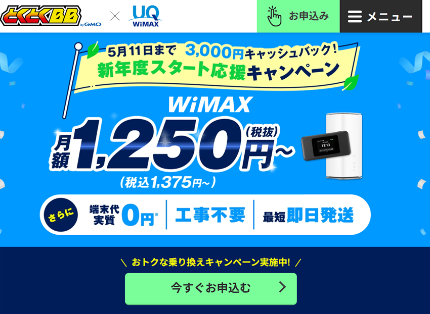 そこで現実解がGMOとくとくBB WiMAX +5G。