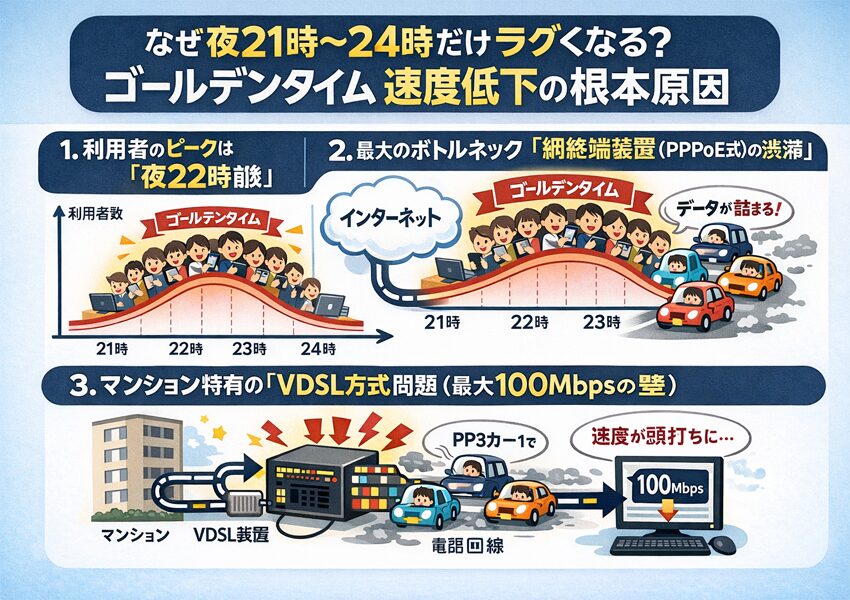 なぜ夜21時〜24時だけラグくなる?ゴールデンタイム速度低下の根本原因