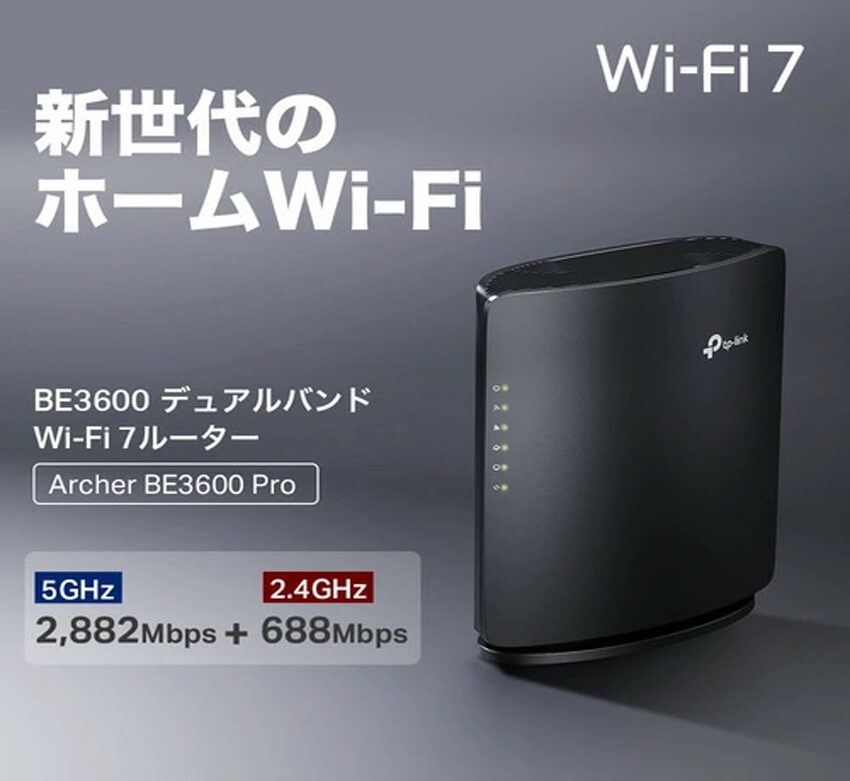 - Archer BE3600 Proは、デュアルバンドWi-Fi 7で最大3.6Gbps(BE3600)。