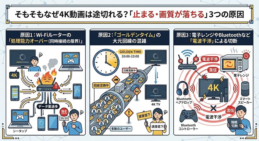 4K動画の途切れはストレスですが、原因は3つに分解できます。