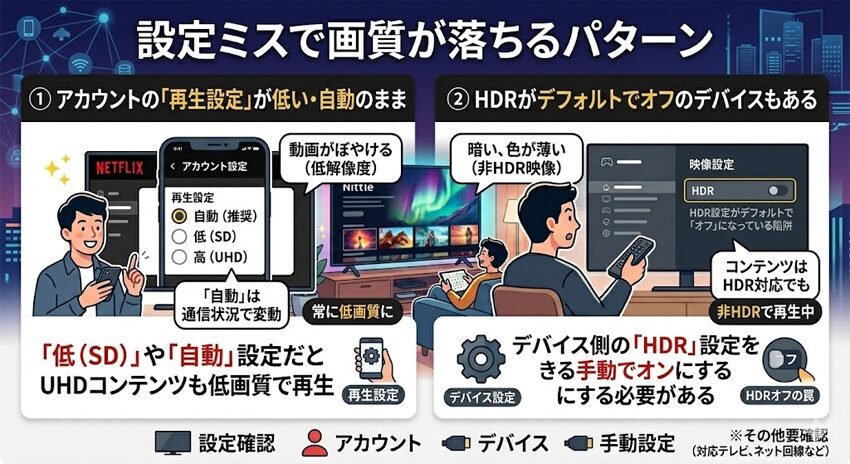 Netflixが高画質(4K/HDR)にならない原因は、ほぼこの4つです。