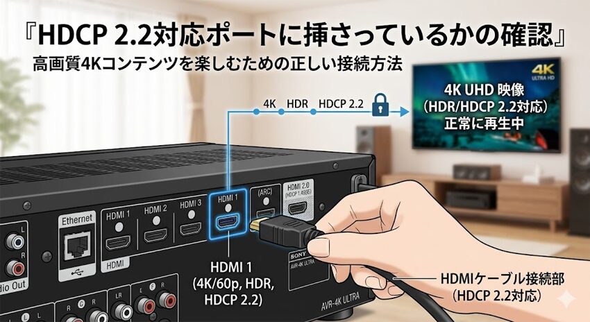 HDCP 2.2対応ポートに挿さっているか