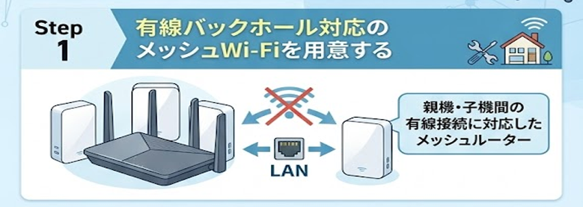 Step1 有線バックホール対応のメッシュWi-Fiを用意する