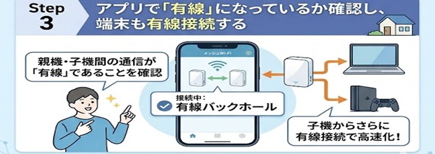 メッシュWi-Fi同士の通信を「無線」から「有線」に変える
