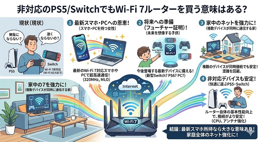 非対応のPS5/SwitchでもWi-Fi 7ルーターを買う意味はある?