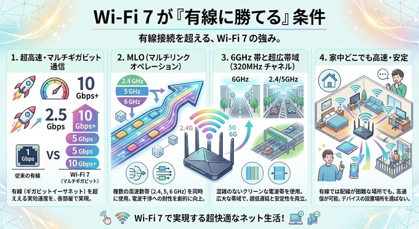 - Wi-Fi 7が有線に並ぶ条件
