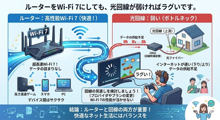 ルーターをWi-Fi 7にしても、光回線が弱ければラグいです
