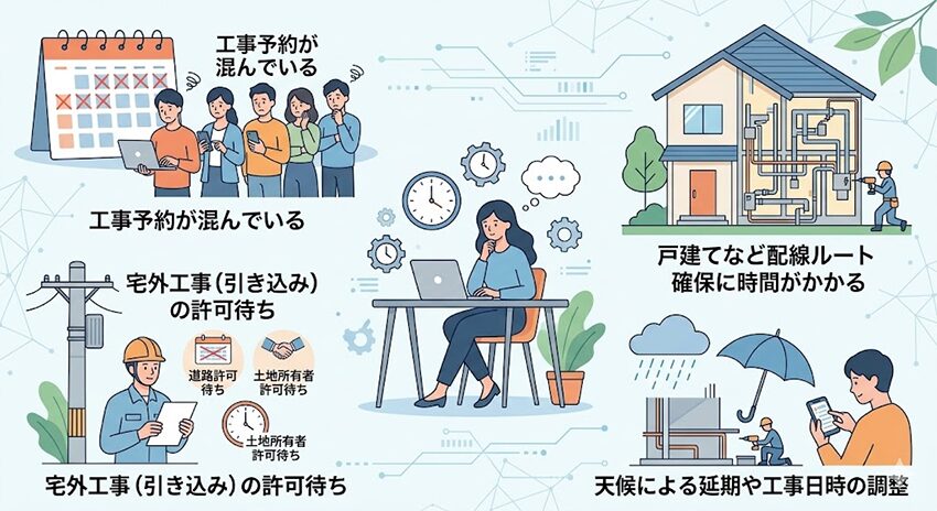だから、あなたがすでに「宅内工事→屋外待ち」に入っているなら、そのケースでは2段階調整の負担を背負っていると考えて動くのが現実的です。