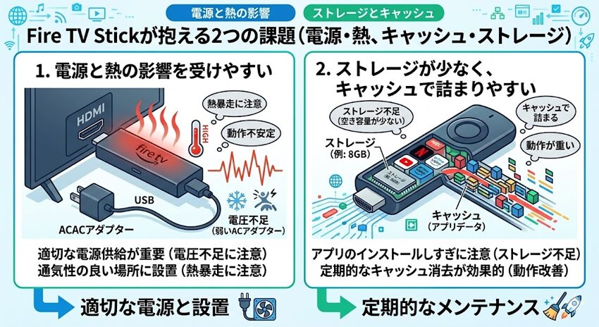 「Fire TV Stickは小さいぶん、電源と熱と容量の影響をモロに受ける。まず本体から見ろ、が正解だ。」