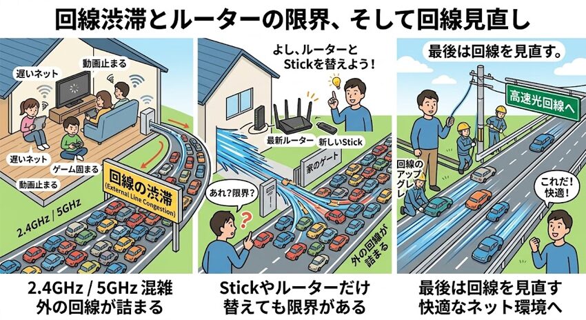 回線が渋滞しているなら、Stickやルーターだけ替えても限界がある