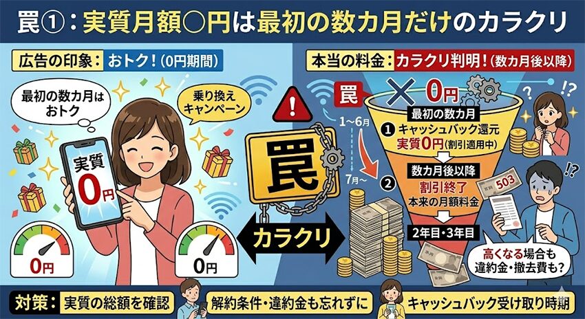 罠①:実質月額〇円は最初の数カ月だけのカラクリ