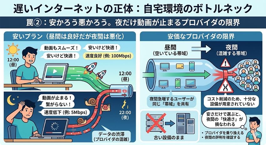 罠②:安かろう悪かろう。夜だけ動画が止まるプロバイダの限界