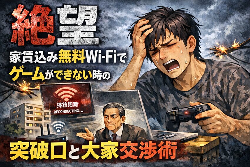 「ネット完備」「無料Wi-Fi付き」と書いてあったから安心して入居したのに、夜になるとApexやValorantがパケロスだらけ。