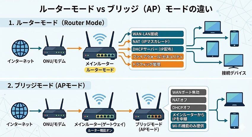 ルーターモード vs ブリッジ(AP)モードの違い