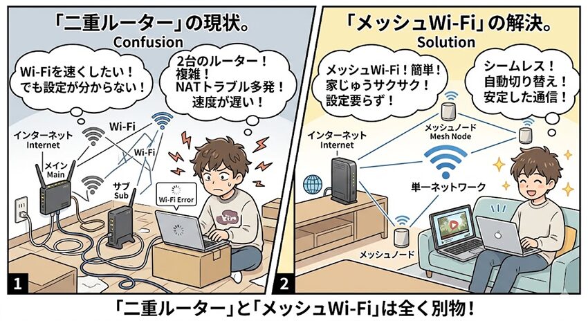 よくある勘違い!二重ルーターと「メッシュWi-Fi」は全く別物