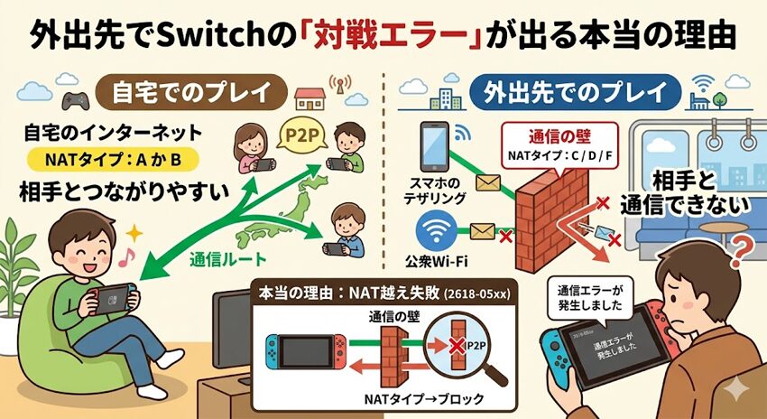 最大の壁!外出先でSwitchの「対戦エラー」が出る本当の理由
