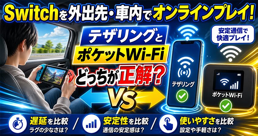 長時間のドライブや旅行、出張先で快適にSwitchを遊びたいなら、スマホを酷使するテザリングより、用途に合ったポケットWi-Fiを先に比較したほうが早いです。
