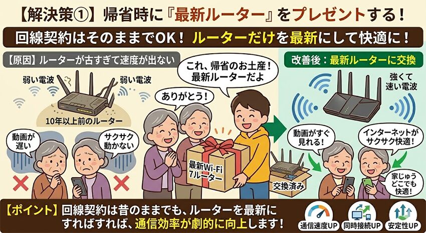 解決策①:回線はそのまま「最新ルーター」を自分がプレゼントする