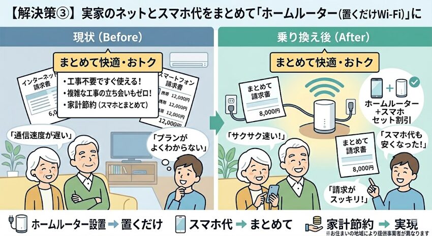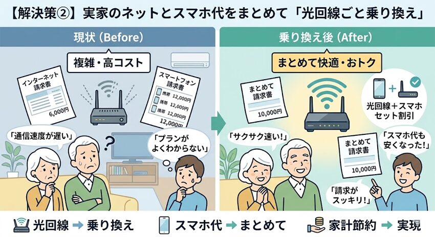 解決策②:実家のネットとスマホ代をまとめて「光回線ごと乗り換え」