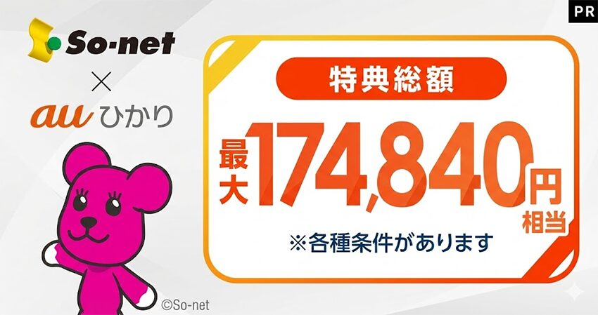 • 現金キャッシュバック!最大75,000円!違約金負担額!最大3万円        👉 So-net 光(auひかり) がおすすめ(最大7万円超えの圧倒的還元!)
